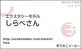 高収入戦隊しらべさんジャー まぁ~とりあえず見てください テラわろす! うそこメーカーで自分の名前を入れると いろいろ作ってくれるYO~ エクスタシーモデルのしらべさんでした。 名刺メーカー