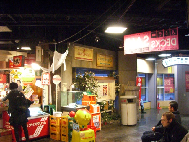 (るるぶ 東京ベストセレクション) の出番です!!付録の路線図と東京便利マップが 大いに役立つ時がやってきました。 しかし!普段、電車に乗りなれてないしらべさんには まったく、意味が無い!!特に地理感覚がイマイチ よく分かってない上に、すでにほろ酔い気味~ 自身満々にガイドブックをマタタビさんに差し出すしらべさん さすがに、マタさんご出身が横浜で学生時代も東京近郊に お住まいだった経験がおありで 躊躇無く引っ張って行ってくれるあたり 頭が上がらないしらべさんでした。 今日からはマタさんに足を向けて寝れないと心に誓うのでありました。 さて、二人は横浜から品川経由の新橋を目指します。 新橋からは「ゆりかもめ」でお台場海浜公園へ向かいます。 とりあえず、事前のやりとりでお台場の東京ジョイポリスがある デックス東京で今回、東京在住の江戸っ子!きなてんさんと 合流します。 しらべさんは、きなてんさんご自身のブログのプロフィールに UPしてある画像が脳内に焼きついてまして かなり、ガテン系の兄貴を想像いたしておりました。 今回、きなてんさにお目にかかったときは しらべさん一生の危機が訪れるのではないかと思ってました いつも、ゲーム内で足を引っ張る事、数知れず!! お会いした時に 「ちょっと、お台場の海に沈んどくか!ゴルァ~」と戦々恐々。 後で、聞いた事なんですが、このプロフィールの画像は ブラピのフィギュアを加工して使ってるんですよ~ そう言えば、なんか以前に〇×△◇を加工したものですよ~と 聞いた記憶が〇×△◇の部分が多分しらべさんの 脳内からキレイさっぱり抜け落ちて、会うまで心の中で きなてんさんはガテン系~きなてんさんはガテン系と 擬似記憶になってたんでしょうね~ 実際にお会いしたときは、二人の娘さんを持つ優しそうな 笑顔にパンチパーマにグラサンとちゃうやんけ~! と、ひとりツッコミしてたのはナイショです。 ホッと胸を撫で下ろし東京の海の藻屑と消えてしまわなかった事を 神に感謝し、チョイ悪オヤジ3人組のお台場観光が 始まりました。 東京在住のグループメンバーのお姉さまからお台場は そんなに見るものないよ~と言われつつも 毎朝、めざましテレビを見ている田舎者の私には フジテレビの社屋がさん然と輝いて見えました。 デックス東京の中をササッと見て周り (台場一丁目商店街) 三人はフジテレビへと向かいます。 (フジ社屋ハチタマ展望台とそこへ向かう哀愁漂う背中のきなてんさん) 特別、芸能人に会うことも無く観光客もまばらなフジ周辺 (ハチタマ展望台からレインボウブリッジとアクアシティーお台場) 今回、もっといろんな写真を撮るつもりでいたのですが 3人で話しながら歩いててすっかり忘れる事に・・・ 強行軍での観光なのでサクサクと回っていきます。 初対面なのに、ボイチャで普段、話してるので 全く、抵抗がないのは良いですね~ 昔からの知り合いの様な錯覚に陥る感覚ですね。 さて、この後はいよいよメインの飲み会が待ち受けてる 新宿へ移動します。 いよいよ、呑み助のマタタビさんとしらべさんの 本領発揮ですよ~!! 次回、一行は新宿へ~東京・新宿編~です。